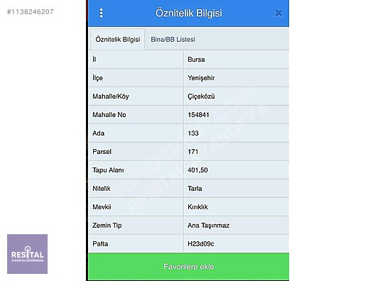 BURSA YENİŞEHİR ÇİÇEKÖZÜ KÖYÜN'DE SATILIK TOPLAM : 400 M2 TARLA - KÖY MERKEZİNE 5 DAKİKA - ÇİÇEKÖZÜ KÖYÜ VE DOĞA MANZARASINA HAKİM BÖLGE - YAKIN ÇEVRESİNDE ÇİFTLİKLER MEVCUT - YENİŞEHİR MERKEZE 10 DAKİKALIK MESAFEDE - KADASTRO YOLA 1 PARSEL - YAZ KIS ARAÇLA ULAŞIM SAĞLANABİLMEKTE - ELEKTRİK YAKIN CEVREDE VAR NOT : YATIRIMA UYGUN , BÖLGE FİYATI ARTIŞ GÖSTERMEKTE BİLGİNİZE !!! Detaylı bilgi için lütfen arayınız *Firmamız Taşınmaz Ticareti Hakkında Yönetmelik Hükümlerine Göre Yetkilendirilmiştir. Taşınmaz Ticareti Belge Numarası: 1601300 ​ 0.533 578 86 85 *Firmamız Taşınmaz Ticareti Hakkında Yönetmelik Hükümlerine Göre Yetkilendirilmiştir. Taşınmaz Ticareti Belge Numarası: 1601300