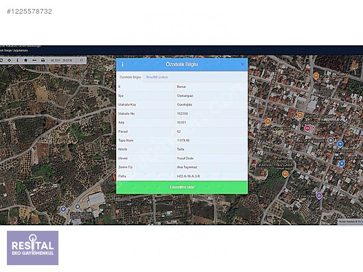 OSMANGAZİ İLÇESİ GÜNDOĞDU KÖYÜNDE BULUNAN TARLAMIZ 10191 ADA 62 PARSELDEDİR. 1979 METREKAREDİR. ALICININ İSTEĞİNE GÖRE TAPUYU 2 KİŞİ ÜZERİNE VEREBİLİRİZ YANi 2 ORTAK ALABİLİRSİNİZ RESMİ OLARAK .. YUSUF DEDE MEVKİSİNDEDİR. SATILIK TARLAMIZ, DUMLUPINAR CADDESİ (ANA ASFALT ) ÜZERİNDEDİR , GÜNDOĞDU IZGARA CAFENİN KARŞISINDADIR. 16 METRE MESAFEDE VE 86 METRE MESAFEDE İMARLI PARSELLER VARDIR. SATILIK TARLAMIZ BENZİN İSTASYONUNA 190 METRE--SOĞUK HAVA DEPOSUNA 56 METRE MESAFEDEDİR. YATIRIM İÇİN GÜNDOĞDUNUN EN GÜZEL YERLERİNDEN BİRİSİDİR. (TARLAMIZDAN KOMŞU TARLAYA 85 METREKARE GEÇİT HAKKI VERİLMİŞTİR ) DETAYLI BİLGİ ALMAK İÇİN İLETİŞİME GEÇİNİZ. İLAN VİDEOSUNU İZLEYİNİZ.. BU MÜLKÜN PAZARLANMASINDA TEK YETKİLİ KURULUŞ RESİTAL EKO GAYRİMENKULDÜR. RESİTAL EKO GAYRİMENKUL HİZMETLERİ TİCARET BAKANLIĞI TARAFINDAN YETKİNLİĞİ ONAYLANMIŞ, TAŞINMAZ TİCARET YETKİ BELGESİNE SAHİP, VERGİ LEVHASI BULUNAN BİR İŞLETMEDİR. TİCARET BAKANLIĞINCA YETKİLENDİRİLMİŞ GAYRİMENKUL FİRMALARINI TERCİH ETMENİZ MENFAATİNİZEDİR. ÖNEMLİ TEKLİF: Satmak istediğiniz gayrimenkulünüz var ise, bilgilerini 0542 462 27 99 telefon numarasına whatsapp üzerinden gönderiniz. Piyasa koşullarına göre değerini birlikte tespit edelim. Doğru fiyata satalım. Ve alıcıyla buluşturalım. Please call Real Estate Consultant MUSTAFA ER (+90542 462 27 99 ) for info in English.