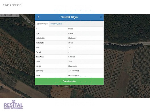 BURSA KESTEL KOZLUÖREN’DE YATIRIMLIK MANZARALI TARLA — 5.406 m² — İPEK YOLU BULVARI CEPHELİ — TEK TAPU Doğa, verimlilik ve yatırım fırsatı bir arada! Bursa Kestel Kozluören mevkiinde yer alan, konumu ve potansiyeliyle öne çıkan bu tarla; hem tarımsal üretim hem de uzun vadeli yatırım için ideal. ARAZİ ÖZELLİKLERİ✅ Toplam Alan: 5.406 m² (Tek Tapu)✅ Konum: İpek Yolu Bulvarı Cepheli✅ 300 Adet Bakımlı Armut Ağacı✅ Kazanıcı Köyü’ne Yakın Konum✅ Kozluören Gölü ve Babasultan Barajı Gölü Manzarası✅ Ulaşım Avantajı — Ana Yola ve Köylere Yakın NEDEN BU ARAZİ?Hazır ve Bakımlı Meyve Bahçesi: 300 adet armut ağacıMuhteşem Doğa ve Göl Manzarası: Hem huzur hem de görsel zenginlikİpek Yolu Bulvarı Cepheli: Ulaşımı kolay, değer kazanan bölgeYüksek Yatırım Potansiyeli: Konumu itibariyle değer artışı öngörülen bir arazi YATIRIMINIZI DOĞANIN KALBİNDE DEĞERLENDİRİN.Detaylı bilgi ve yerinde inceleme için hemen iletişime geçin.