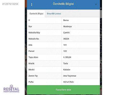 MUDANYA ÇAMLIK KABALAR MEVKİİNDE YER ALAN TARLA HİSSELİ TAPUYA SAHİPTİR. KÖY İCİ İMARLIDIR. 138.5 MT2 ALANA SAHİPTİR. ELEKTRİK VE SU ÇEKİLEBİLİR. KÖY İCİNDEDİR. AYNI YERDE İSTERSENİZ 4 HİSSE DAHA VAR ELİMİZDE TOPLAM 5 HİSSELİK YANİ 692.5 MT2 ALANA SAHİP OLABİLİRSİNİZ. DETAYLI BİLGİ İCİN ULAŞABİLİRSİNİZ...