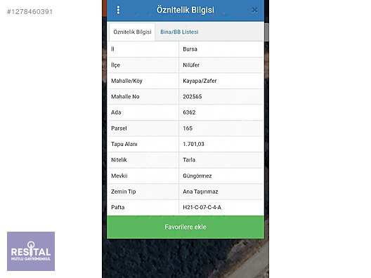 RS MUTLU GAYRİMENKUL KAYAPA/ZAFER'DE SATILIK TARLA HİSSESİ Bahse konu yerimiz Kayapa Zafer mahallesinde kadastro yoluna 18 metre mesafede toplam 1701 m² alan içerisinde, hisseye düşen 212 m² alanlık tarla vasfıdır. Kayapa sanayi bölgesine 5 dakika, merkezine 10 dk mesafede tarlamız hakkında detaylı bilgi için; Ahmet Anıl GÜLEŞ/ Gayrimenkul Danışmanı 0501 103 30 09 Taşınmaz Ticari Yetki Belge NO: 1602234-012​