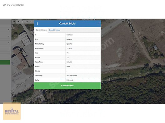 ARSANIN ÖZELLİKLERİ ARSAMIZ ATAKUM ÇAKIRLAR BÖLGESİNDEDİR. ADA: 74 PARSELLER: 13 ARSA TOPLAM ALANI = 346,39 M² KAKS: 1,6 TAKS: 0,3 KAT ADEDİ: 5 ANA YOLA MESAFESİ : 560 M TABAN OTURUMU : 103,91 M² TOPLAM İNŞAAT ALANI: 554,224 M² TOPLAM İNŞAAT ALANI (%30 EMSAL DIŞI DAHİL) = 689,32 M² ZEMİN TABLİYE ALANI : 103, 91 M² TOPLAM DAİRE SAYISI : 4 ADET 3+1 ( BRÜT 120 M²) , 1 ADET 2+1 ( BRÜT 93 M²) (KOT HARİÇ)