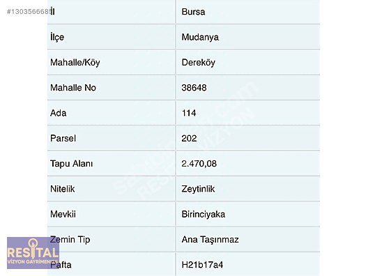 Bursa Mudanya Dereköy'de 2470m² satılık arsa! Doğayla iç içe, huzurlu ve sakin bir yaşam arayanlar için kaçırılmayacak bir fırsat sunuyoruz. Bursa'nın gözde ilçesi Mudanya Dereköy mevkiinde yer alan, 114 ada 202 parsel numaralı bu geniş arsa, yatırım potansiyeli yüksek konumuyla dikkat çekiyor. Doğayla İç İçe Yaşam ve Yatırım Fırsatı Şehir hayatının stresinden uzaklaşmak, temiz hava solumak ve kendi yaşam alanınızı yaratmak istiyorsanız, bu arsa tam size göre. Dereköy'ün doğal güzellikleri içinde yer alan bu parsel, aynı zamanda gelişime açık bir bölgede bulunmasıyla da öne çıkıyor. Köy yerleşim alanına yakınlığı ve ulaşım imkanlarına kolay erişimi sayesinde hem günlük yaşamınız hem de gelecekteki projeleriniz için ideal bir zemin sunuyor. Arsa Özellikleri ve Konum Avantajları Yüzölçümü: 2470 m² geniş kullanım alanı Tapu Durumu: Müstakil Tapulu İmar Durumu: Zeytinlik alanı (detaylı bilgi için iletişime geçiniz) Altyapı: Mevcut (Su, elektrik, yol erişimi hakkında bilgi için arayınız) Konum: Mudanya Dereköy'de, köy yerleşimine yakın Manzara: Doğal çevre ve yeşillik manzarası Yatırım Potansiyeli: Gelişmekte olan bölgede, yüksek değer artış potansiyeli Neden Bu Arsa? Bu arsa, sadece bir gayrimenkul yatırımı değil, aynı zamanda hayallerinizdeki evi inşa etmek veya doğayla baş başa bir yaşam kurmak için eşsiz bir fırsattır. Temiz havası, sakin çevresi ve ulaşım kolaylığı ile hem hafta sonları kaçamak yapabileceğiniz hem de kalıcı olarak yaşayabileceğiniz bir alan sunuyor. Yatırımcılar için de bölgenin gelişim potansiyeli göz önüne alındığında, gelecekte önemli bir değer kazanma olasılığı bulunmaktadır. Profesyonel gayrimenkul danışmanlığı hizmetimizle, güvenli ve sorunsuz bir alım süreci için bizimle iletişime geçebilirsiniz. Detaylı bilgi almak ve bu eşsiz arsayı yerinde görmek için randevu oluşturmayı unutmayın! RESİTAL VİZYON GAYRİMENKUL Üçevler Mahallesi, Ersan Sokak, Çetin Kaya İş Merkezi, No:28 Kat:2 Daire:4 NİLÜFER / BURSA İlanda bulunan taşınmazın tüm satış ve pazarlama sürecinde tek yetkili firmayız. TSE 11816 Sayılı Emlak Komisyonculuğu Genel Kuralları Standardı gereği 'Yer Gösterme Belgesi' imzalatarak hizmet vermekteyiz.