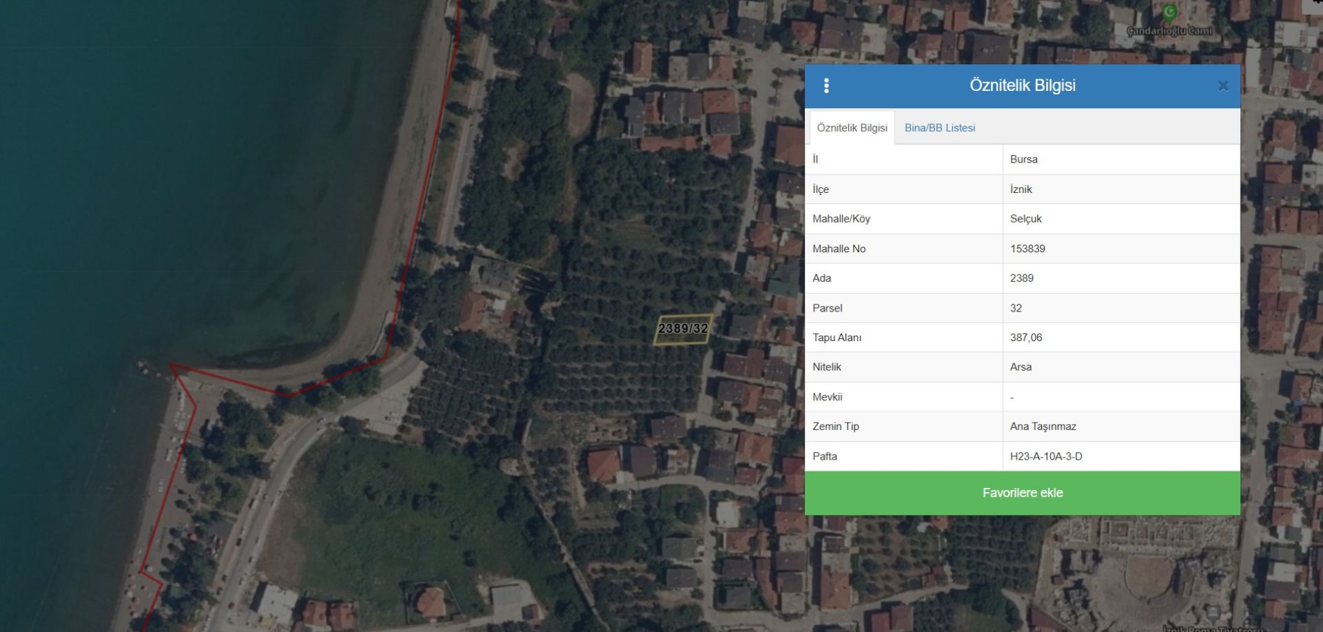 Arsa, İznik Suriçi Koruma Amaçlı Uygulama İmar Planında konut alanında kalmaktadır. 3. Derece Arkeolojik Sit Alanında ve Kentsel Sit Alanında kalmakta olup, inşaata başlamadan önce Müze Müdürlüğü tarafından sondaj kazısı yapılacaktır. Yapılaşma koşulları; Serbest Nizam 2 katlı, 6.50 metre yüksekliğinde olacak şekilde inşaat izni bulunmaktadır. Subasman yüksekliği en fazla 0.50 metredir. Elimizde farklı parsellerde mevcuttur.